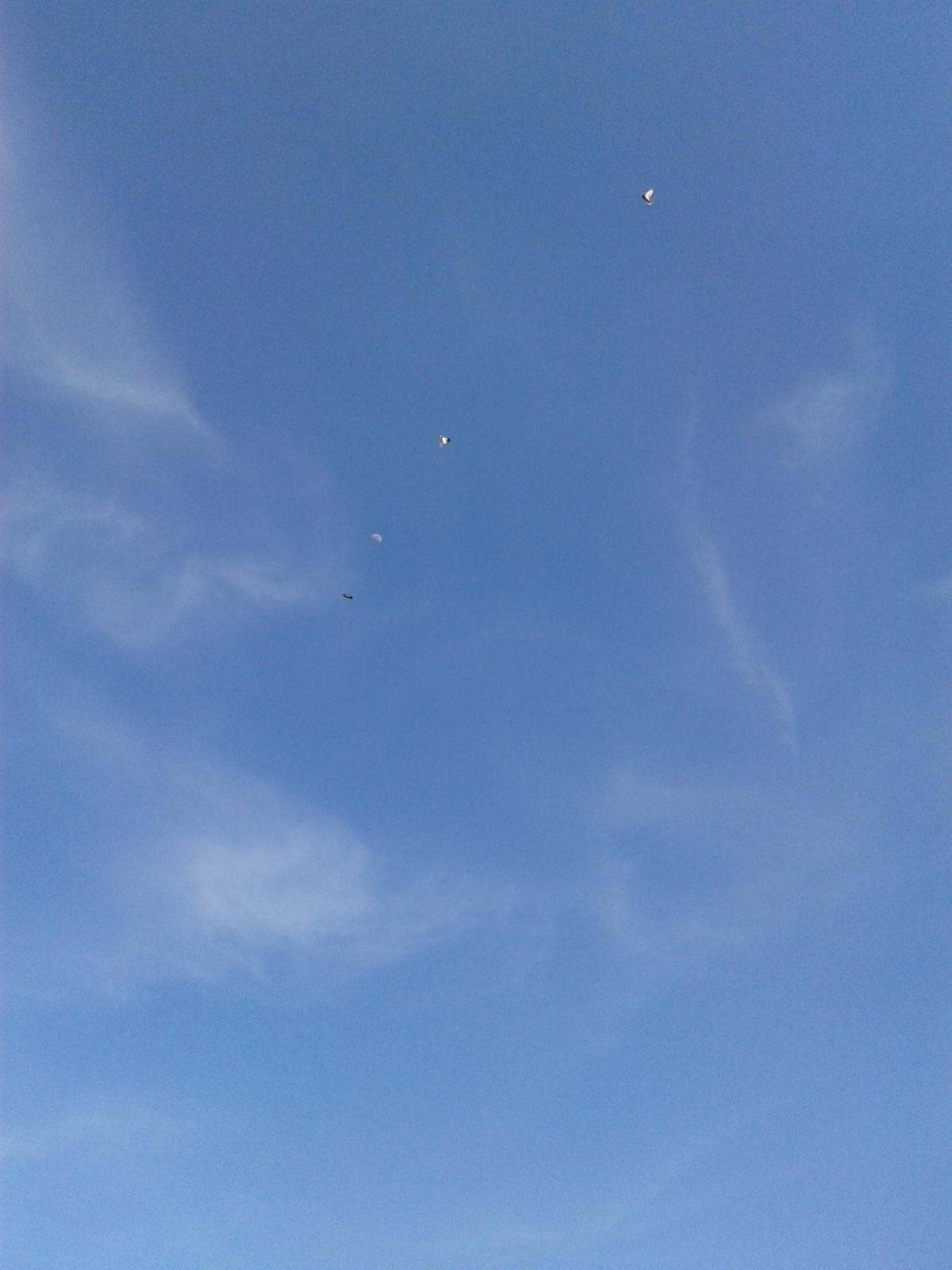 La primera intención al realizar la fotografía fue capturar imágenes de las curiosas formas que toman las nubes en el cielo, pero al ampliar una de las fotografías podemos encontrar una alineación de estos dos pájaros con la luna y un extraño objeto que sobrevolaba la misma zona: